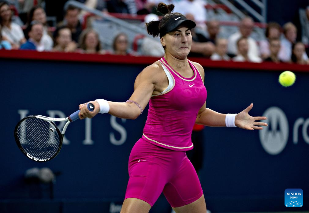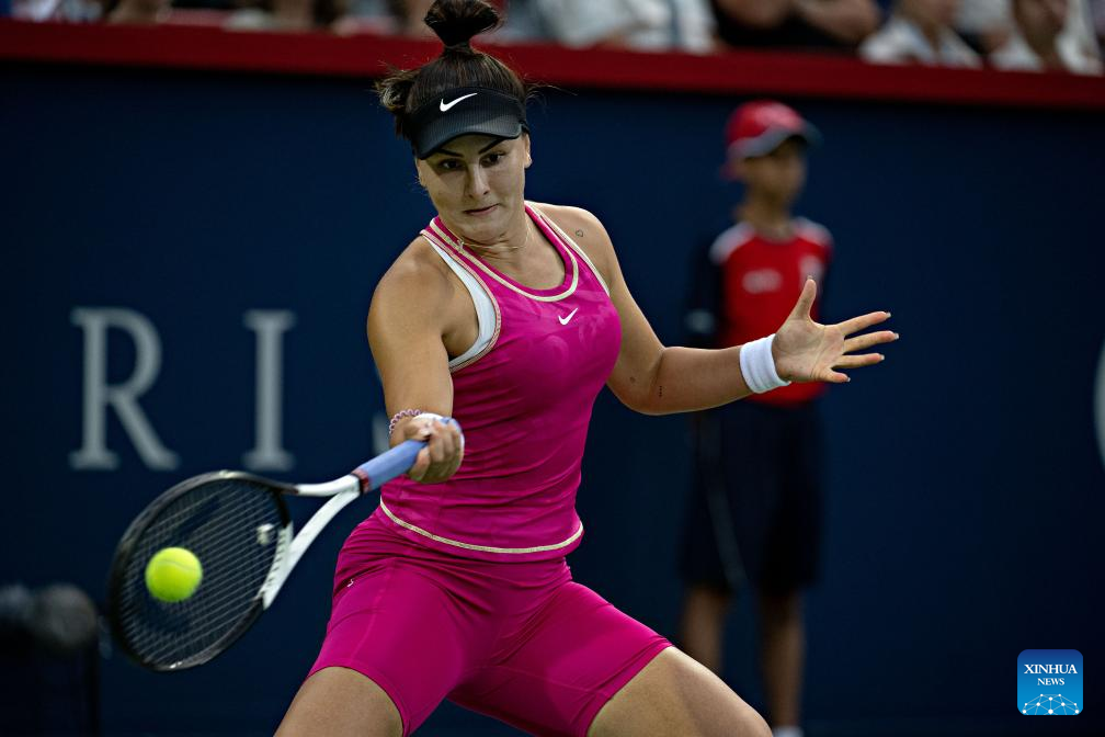 Bianca Andreescu competes during the women's singles first round match between Bianca Andreescu of Canada and Camila Giorgi of Italy at the National Bank Open tennis tournament in Montreal, Canada, on Aug. 8, 2023. (Photo by Andrew Soong/Xinhua)