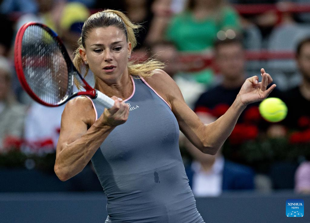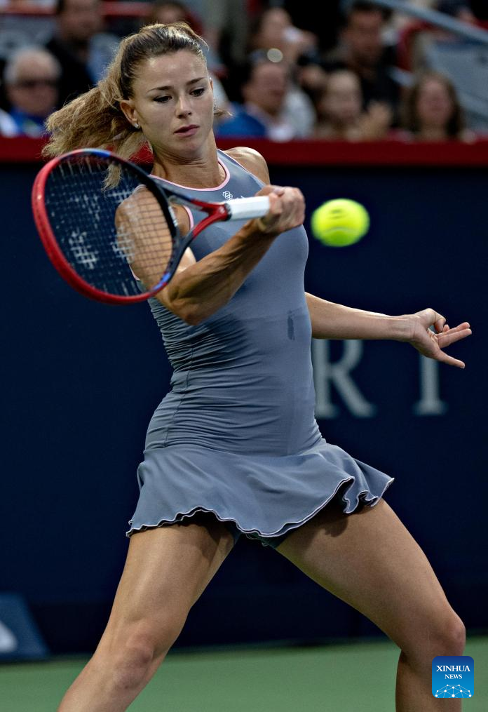 Camila Giorgi competes during the women's singles first round match between Bianca Andreescu of Canada and Camila Giorgi of Italy at the National Bank Open tennis tournament in Montreal, Canada, on Aug. 8, 2023. (Photo by Andrew Soong/Xinhua)