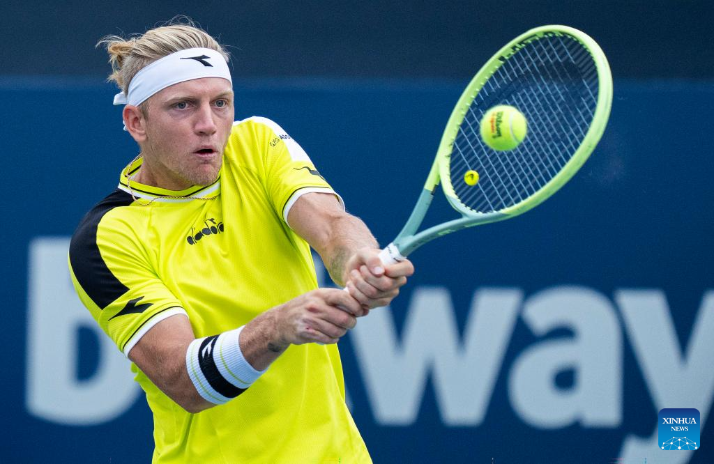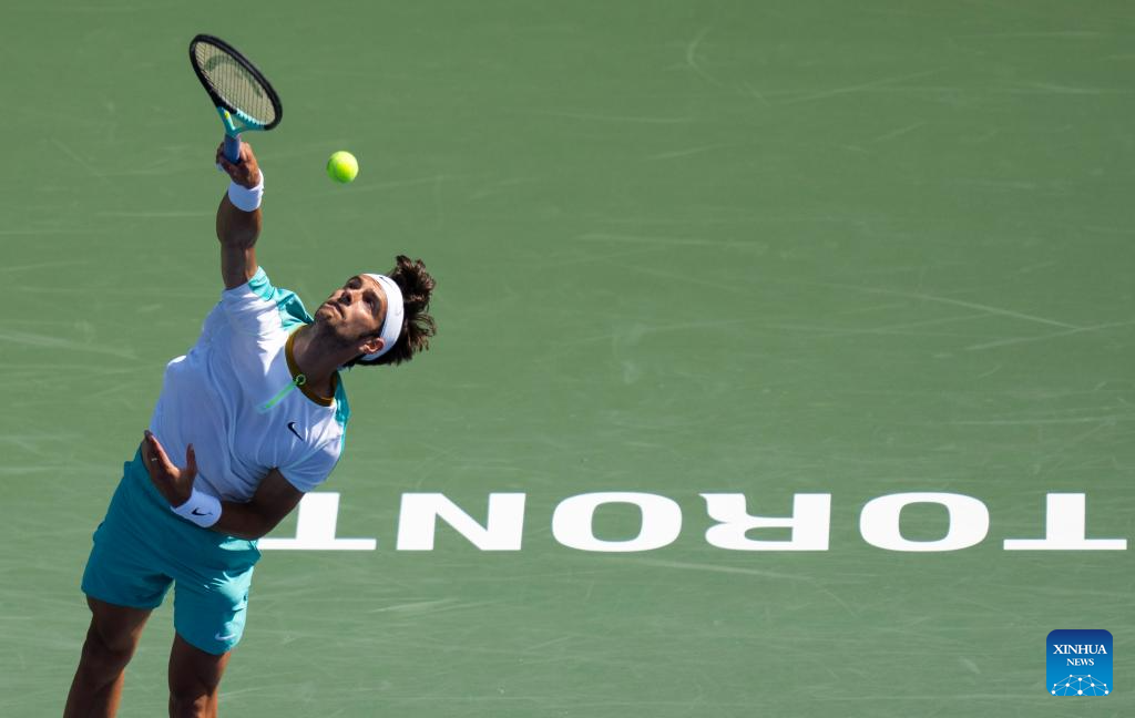 Alejandro Davidovich Fokina competes during the men's singles round of 16 match between Alejandro Davidovich Fokina of Spain and Casper Ruud of Norway at the National Bank Open tennis tournament in Toronto, Canada, on Aug. 10, 2023. (Photo by Zou Zheng/Xinhua)