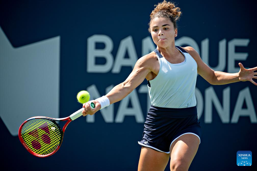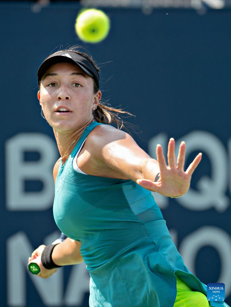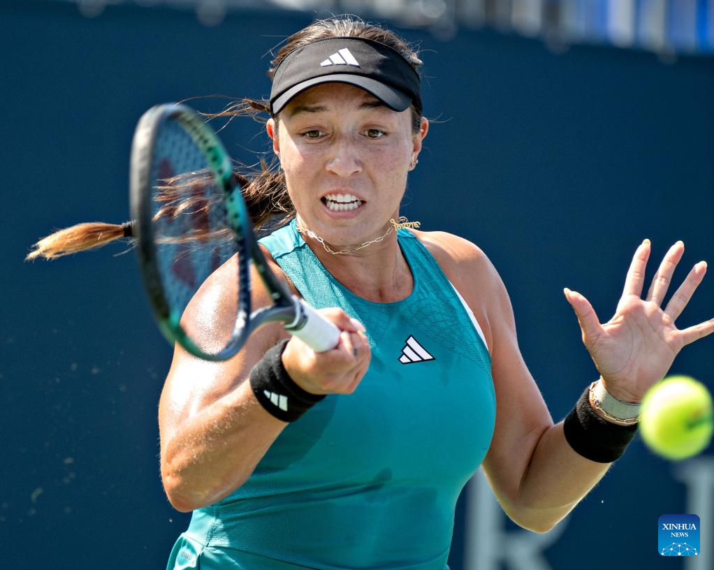 Jessica Pegula of the United States hits a return during the women's singles round of 16 match between Jessica Pegula of the United States and Jasmine Paolini of Italy at the National Bank Open tennis tournament in Montreal, Canada, on Aug. 10, 2023. (Photo by Andrew Soong/Xinhua)