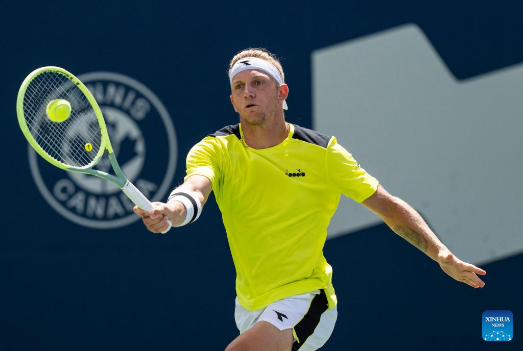 Alejandro Davidovich Fokina hits a return during the men's singles quarterfinal match between Alejandro Davidovich Fokina of Spain and Mackenzie McDonald of the United States at the National Bank Open tennis tournament in Toronto, Canada, Aug. 11, 2023. (Photo by Zou Zheng/Xinhua)