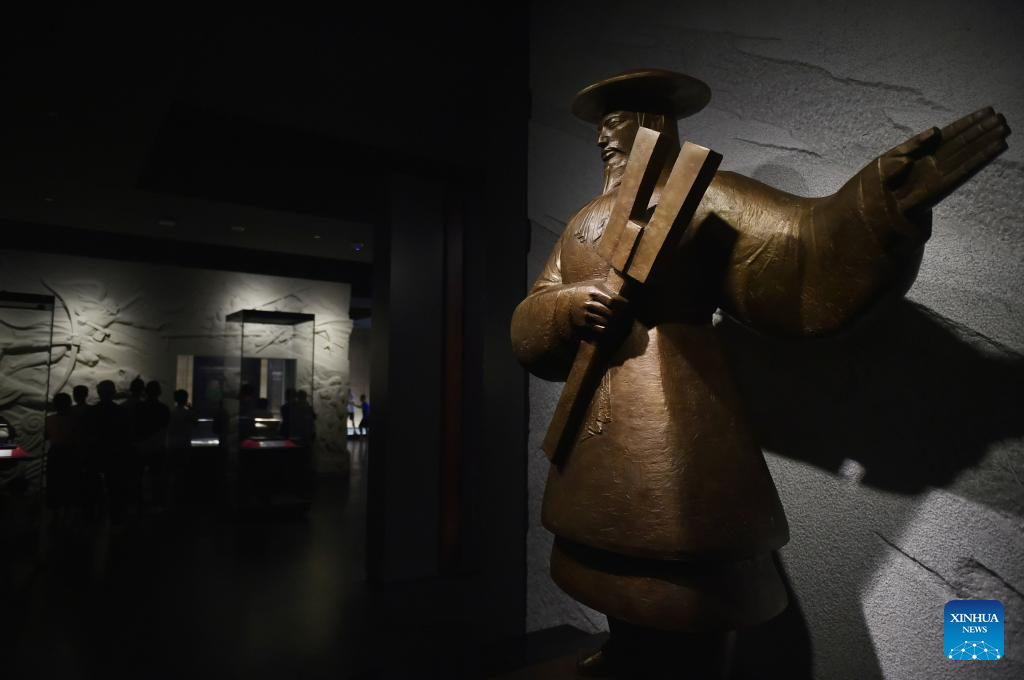 People visit the Yinxu Museum in Anyang, central China's Henan Province, Aug. 10, 2023. Museums in Henan Province have witnessed a large amount of visitors since the beginning of summer vacation this year. (Xinhua/Lu Peng)