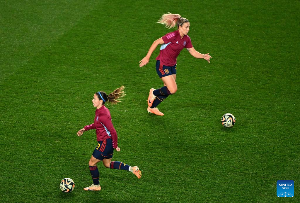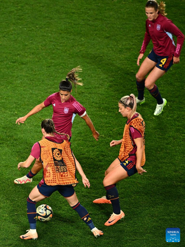 Spain's players warm up before the semi-final match between Spain and Sweden at the FIFA Women's World Cup Australia & New Zealand 2023 in Auckland, New Zealand, Aug. 15, 2023. (Xinhua/Li Yibo)