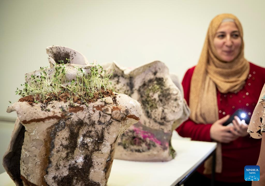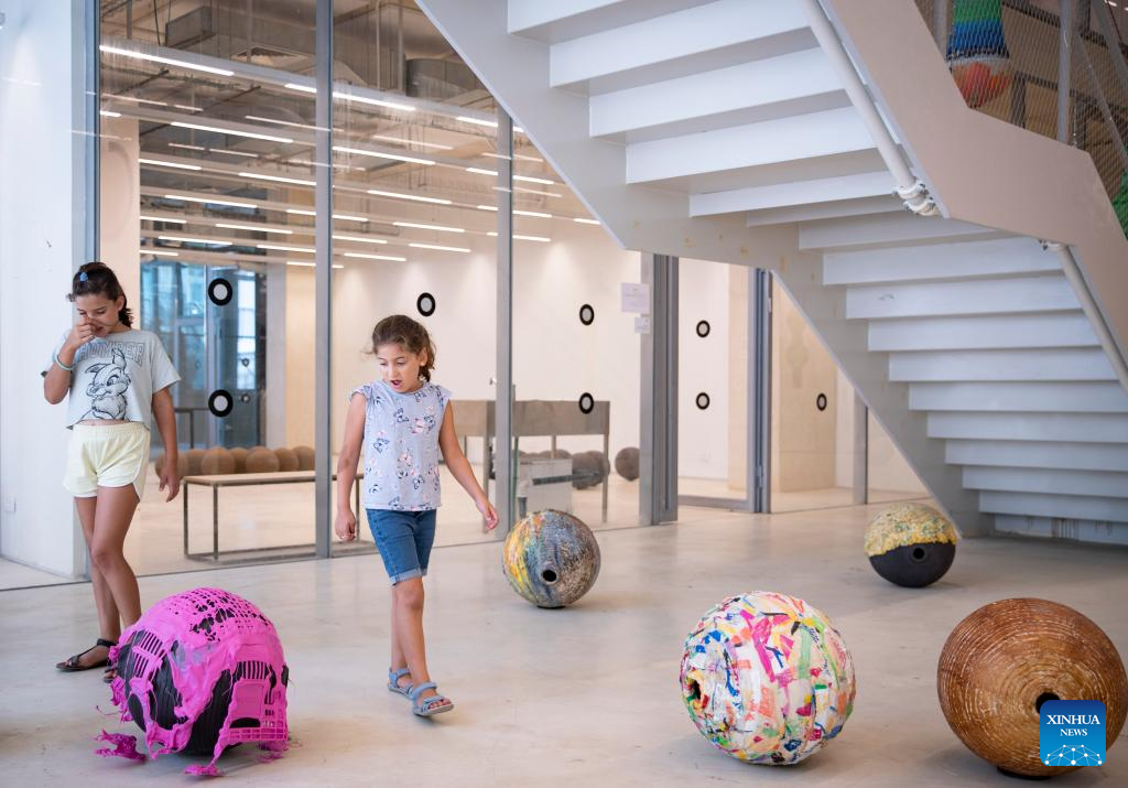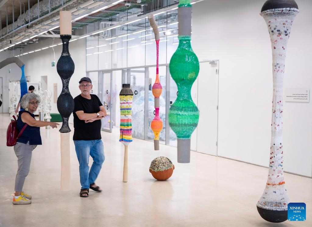 This photo taken on Aug. 15, 2023 shows an installation design work during the Graduate Exhibition at Bezalel Academy of Arts and Design in Jerusalem. More than 400 graduates from all the Bezalel's departments have presented their works in places which are transformed from study areas into a giant museum for a two-week period. (Xinhua/Chen Junqing)
