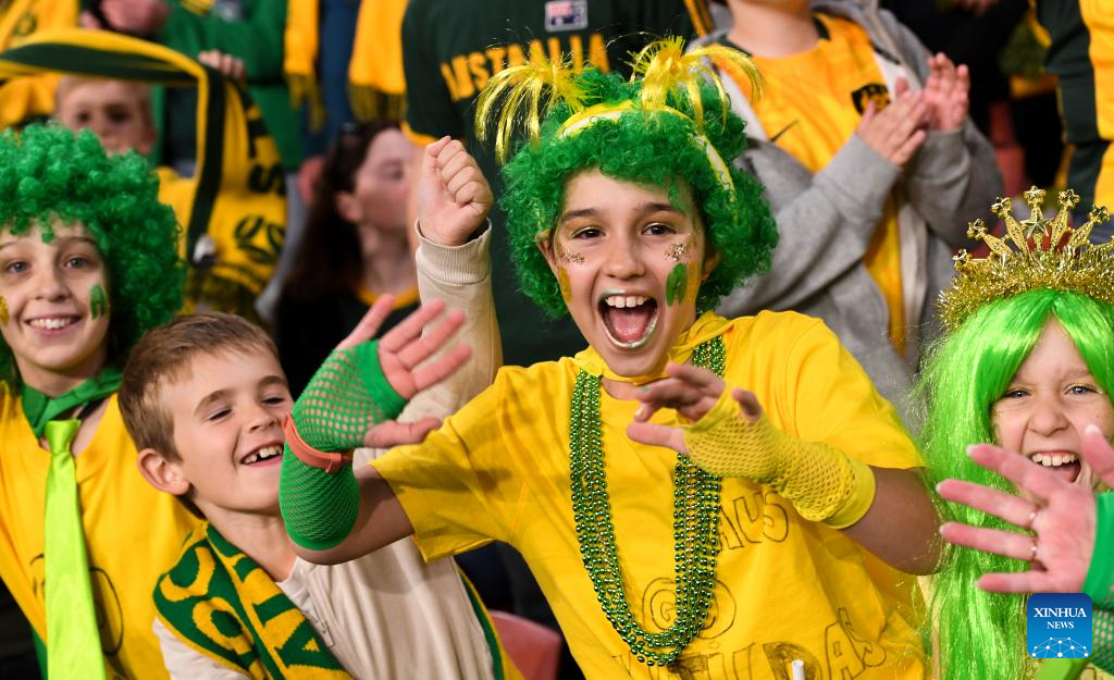 Australian fans cheer before the third place play-off between Sweden and Australia at the 2023 FIFA Women's World Cup in Brisbane, Australia, Aug. 19, 2023. (Xinhua/Guo Lei)