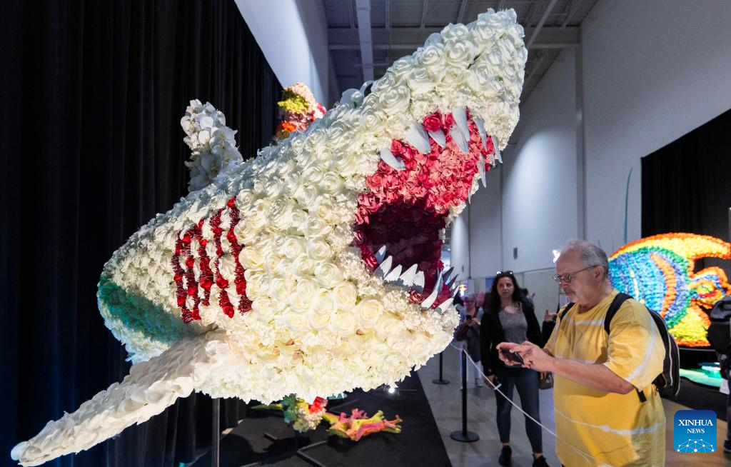 People visit a floral exhibition during the 2023 Canadian National Exhibition (CNE) in Toronto, Canada, on Aug. 18, 2023. As one of the largest community events in Canada, the annual 18-day exhibition kicked off here on Friday. (Photo by Zou Zheng/Xinhua)