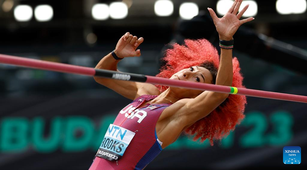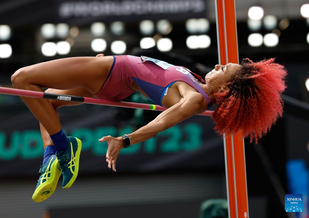 Taliyah Brooks of the United States competes during the High Jump of Women's Heptathlon at the World Athletics Championships Budapest 2023 in Budapest, Hungary on Aug. 19, 2023. (Xinhua/Wang Lili)