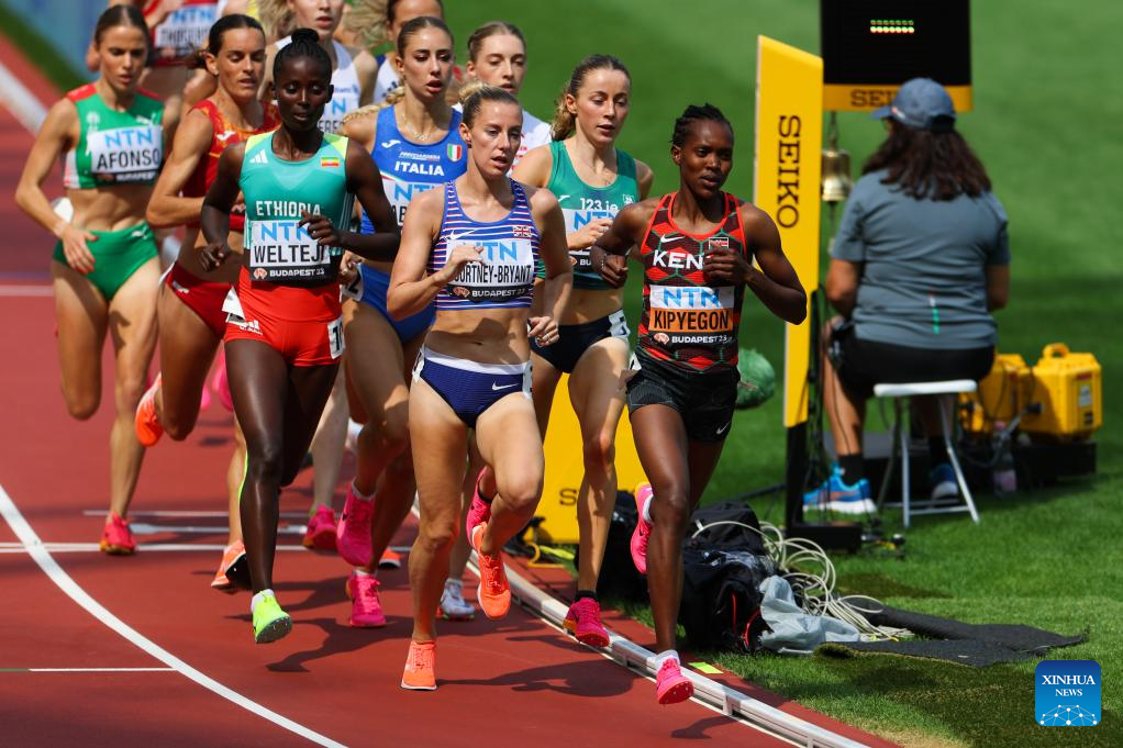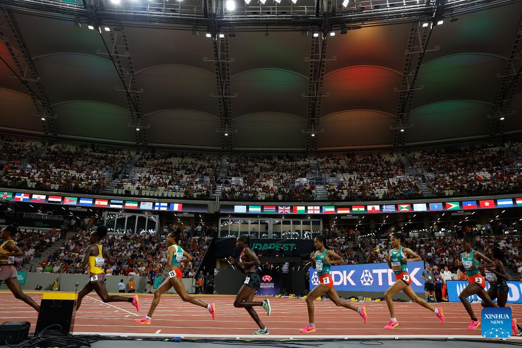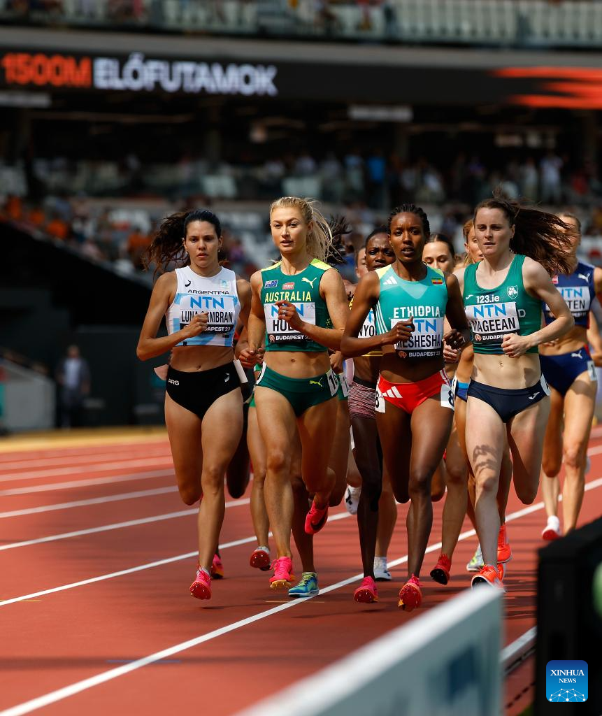 Athletes compete during the women's 1500m heat of the World Athletics Championships Budapest 2023 in Budapest, Hungary on Aug. 19, 2023. (Xinhua/Wang Lili)
