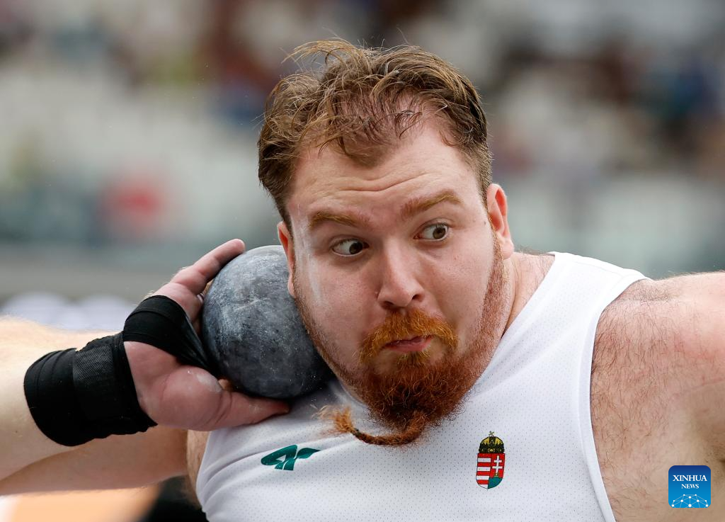 Balazs Toth of Hungary competes during the Men's Shot Put Qualification of the World Athletics Championships Budapest 2023 at the National Athletics Centre stadium in Budapest, Hungary on Aug. 19, 2023. (Xinhua/Wang Lili)