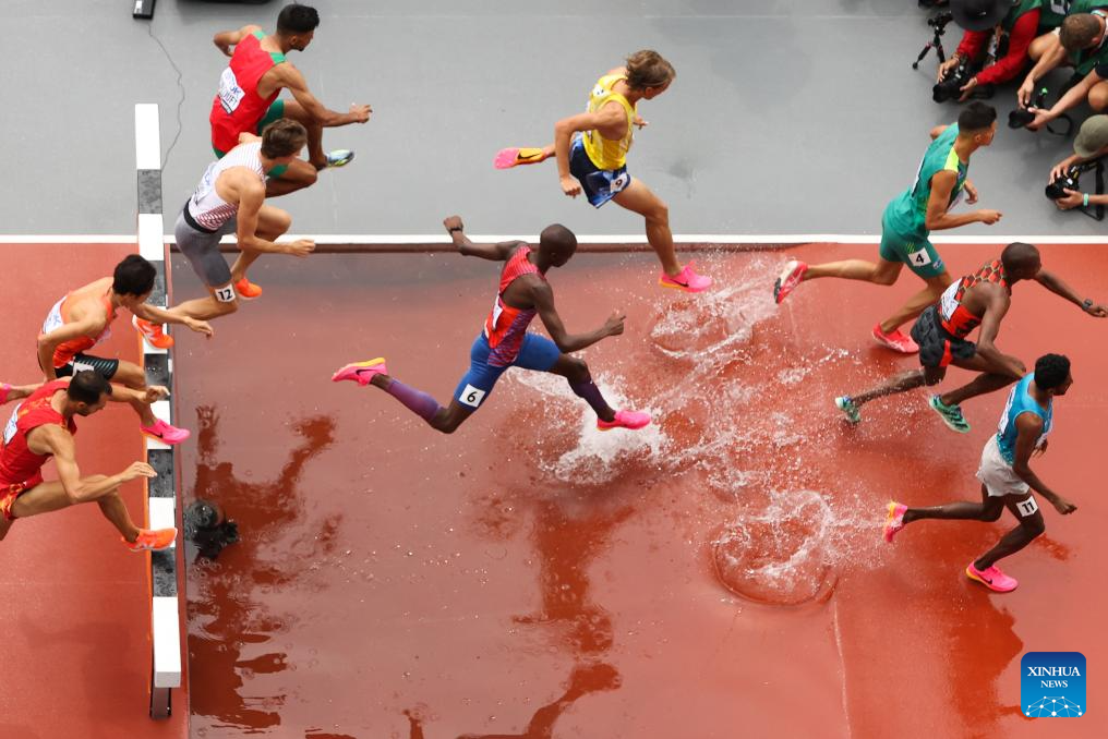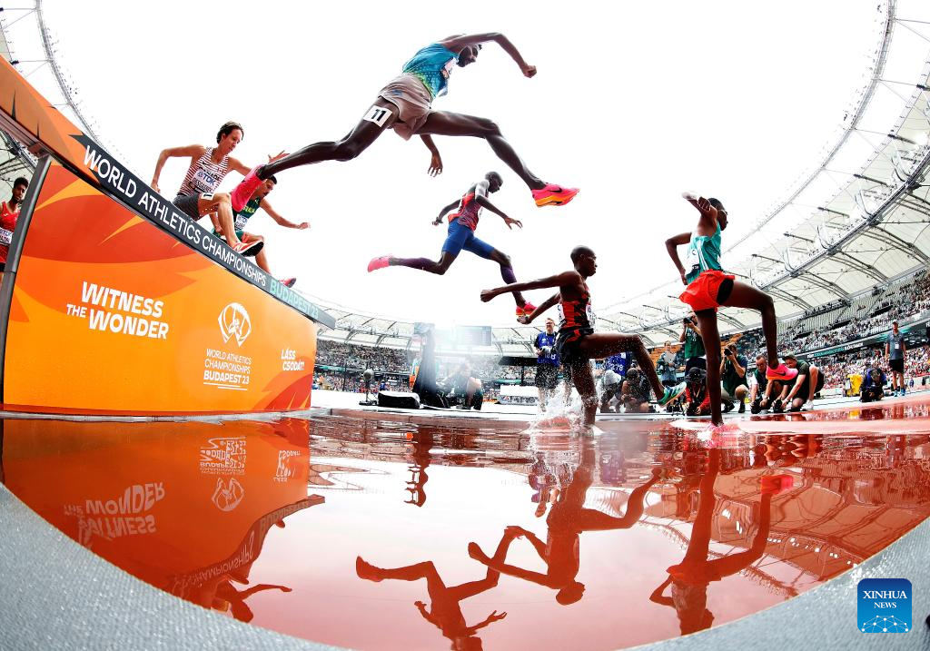 Athletes compete during the 3000m Steeplechase Men Heats of the World Athletics Championships Budapest 2023 at the National Athletics Centre stadium in Budapest, Hungary on Aug. 19, 2023. (Xinhua/Zheng Huansong)
