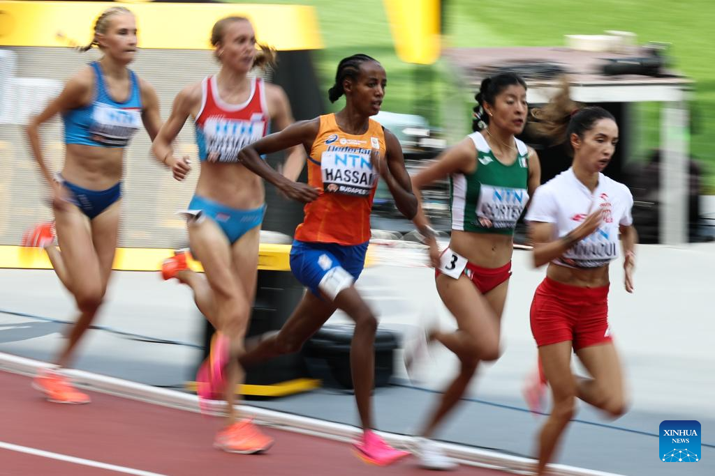 Sifan Hassan (C) of the Netherlands competes during the women's 1500m Heat 1 of the World Athletics Championships Budapest 2023 at the National Athletics Centre stadium in Budapest, Hungary on Aug. 19, 2023. (Xinhua/Zheng Huansong)