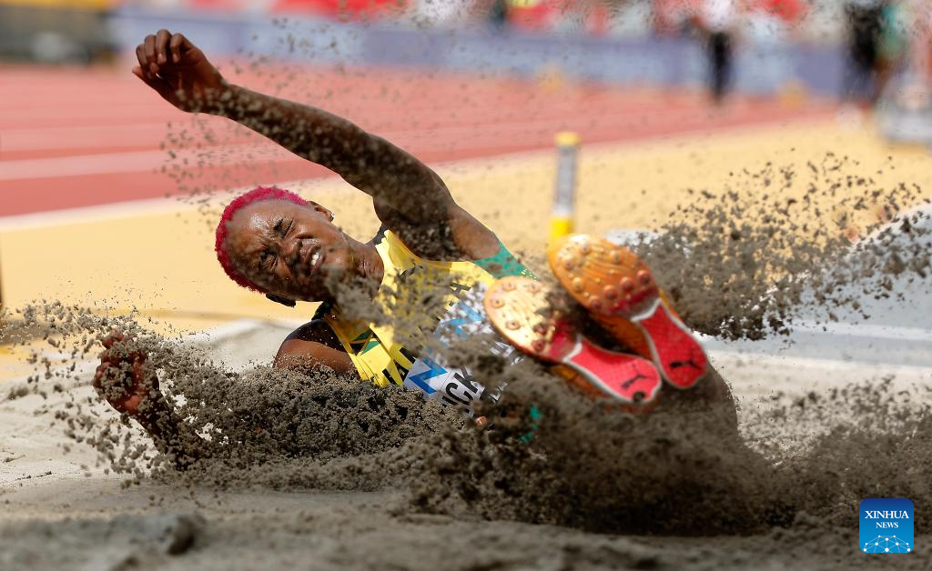 Tissanna Hickling of Jamaica competes during the women's Long Jump Qualifications of the World Athletics Championships Budapest 2023 at the National Athletics Centre stadium in Budapest, Hungary on Aug. 19, 2023. (Xinhua/Wang Lili)