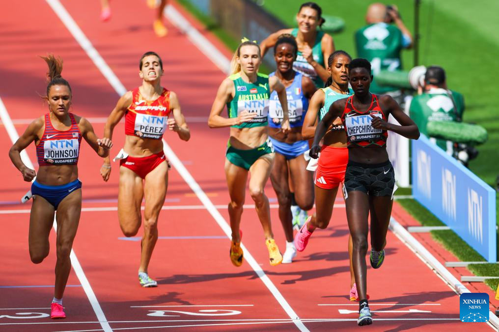 Nelly Chepchirchir (1st R) of Kenya competes during the women's 1500m Heat 3 of the World Athletics Championships Budapest 2023 at the National Athletics Centre stadium in Budapest, Hungary on Aug. 19, 2023. (Xinhua/Zheng Huansong)