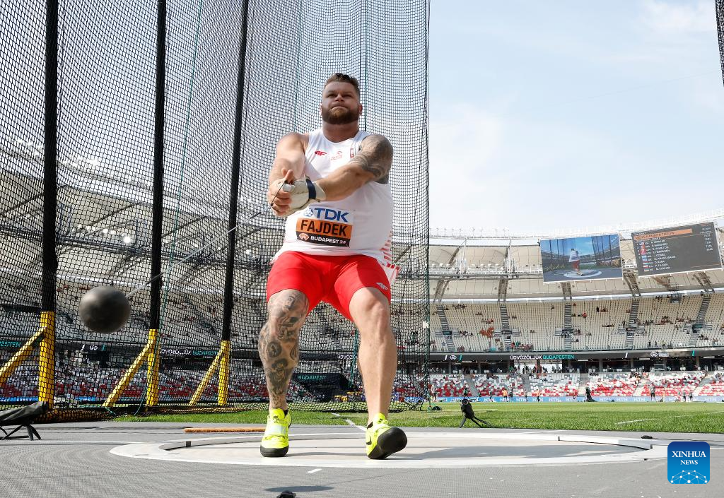 Poland's Pawel Fajdek competes during the Men's Hammer Throw Qualifications of the World Athletics Championships Budapest 2023 at the National Athletics Centre stadium in Budapest, Hungary on Aug. 19, 2023. (Xinhua/Wang Lili)