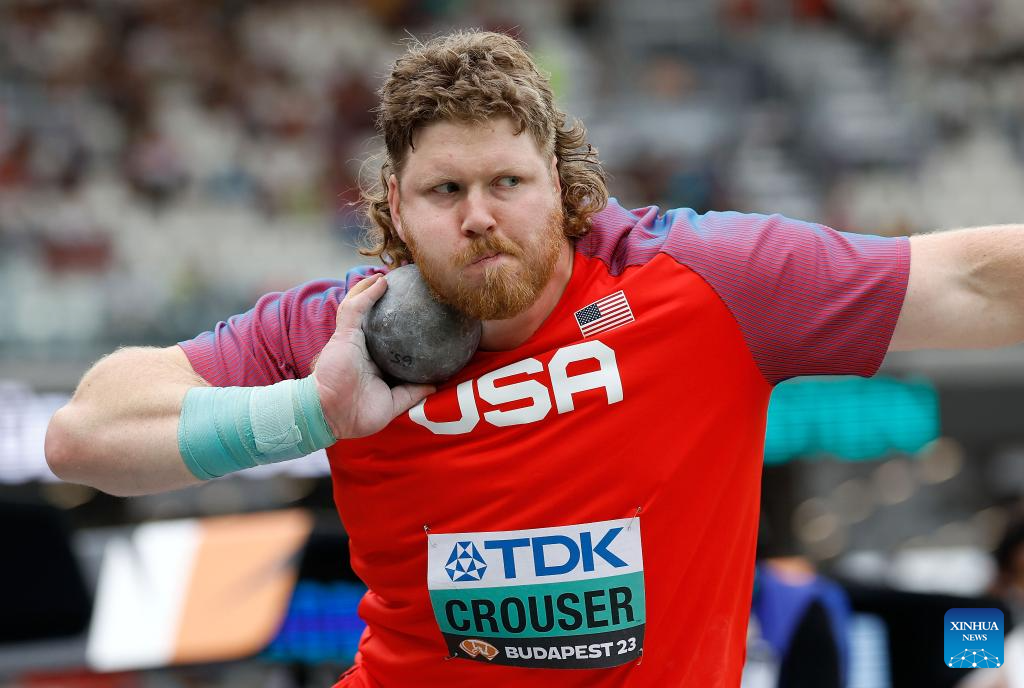 Ryan Crouser of the United States competes during the Men's Shot Put Qualification of the World Athletics Championships Budapest 2023 at the National Athletics Centre stadium in Budapest, Hungary on Aug. 19, 2023. (Xinhua/Wang Lili)