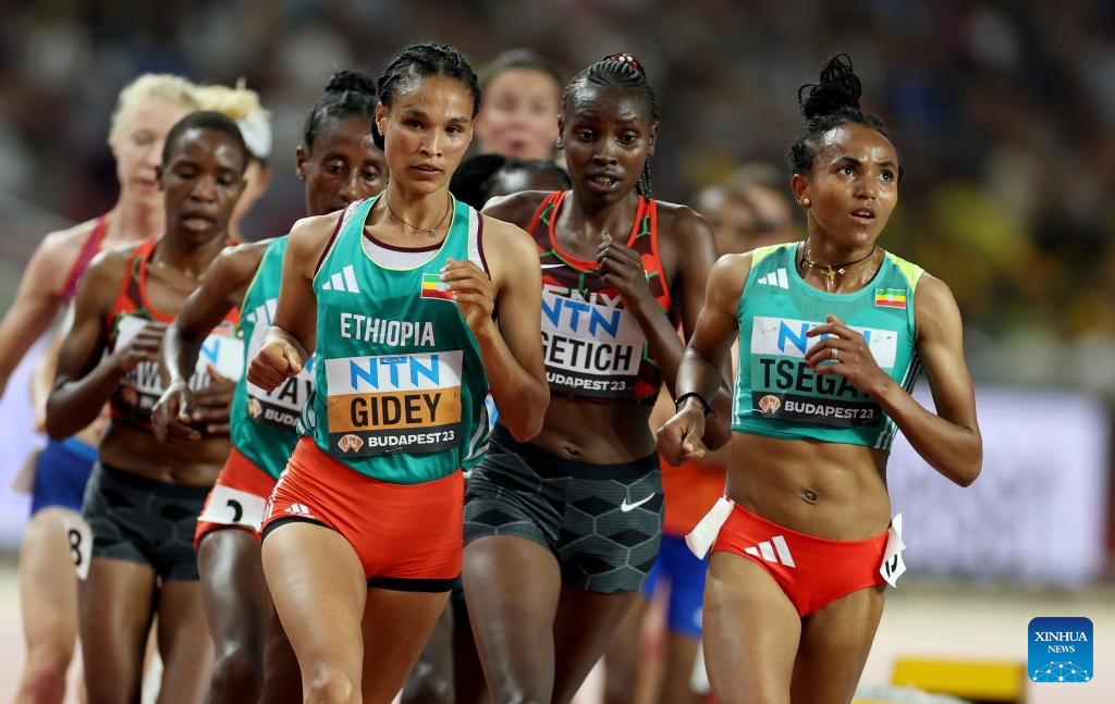 Gudaf Tsegay (R) of Ethiopia competes during the women's 10000m Final of the World Athletics Championships Budapest 2023 in Budapest, Hungary on Aug. 19, 2023. (Xinhua/Li Ying)