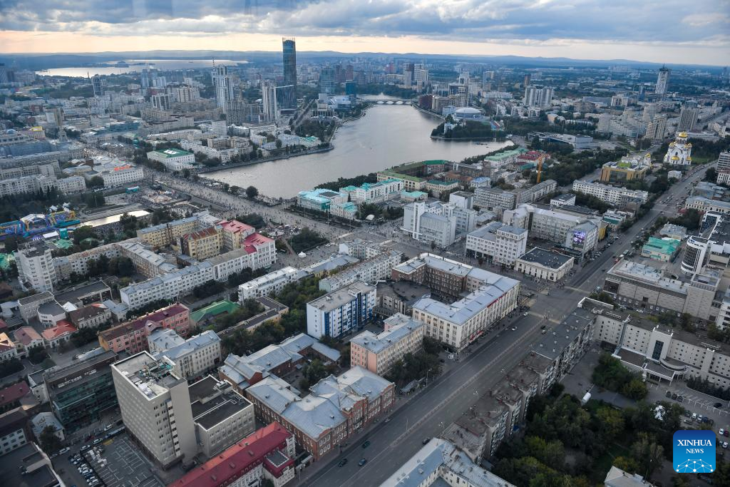 This photo taken on Aug. 19, 2023 shows a view of Ekaterinburg, Russia. Celebrations were held Saturday in Ekaterinburg to mark the 300th anniversary of the foundation of the city. (Photo by Alexander Zemlianichenko Jr/Xinhua)
