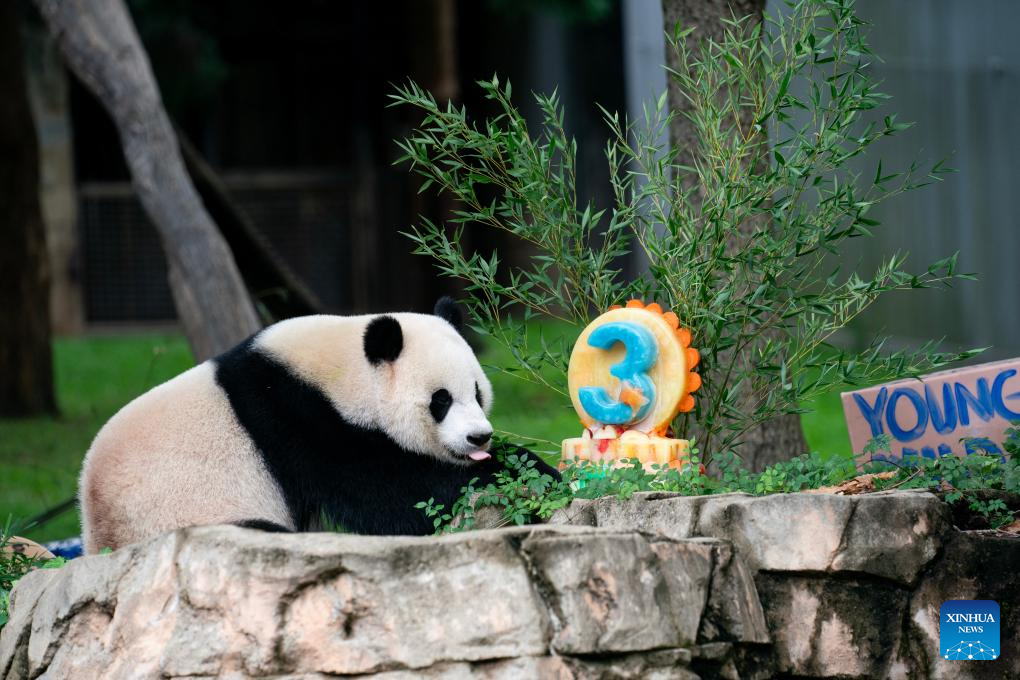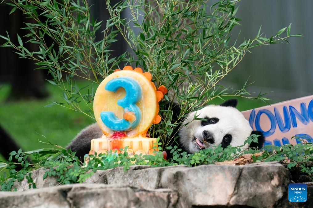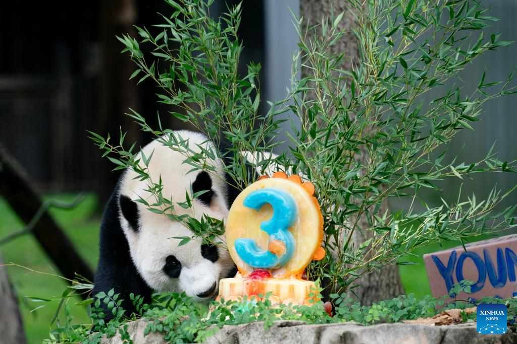 WASHINGTON, Aug. 21 (Xinhua) -- Giant panda cub Xiao Qi Ji celebrated his third birthday at the Smithsonian's National Zoo in Washington, D.C. on Monday.