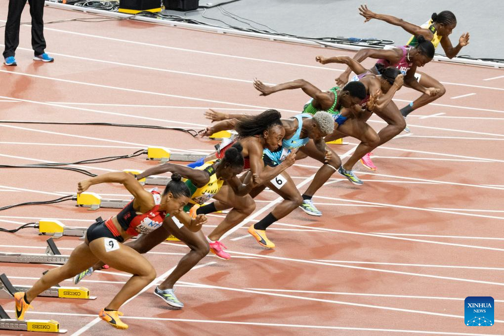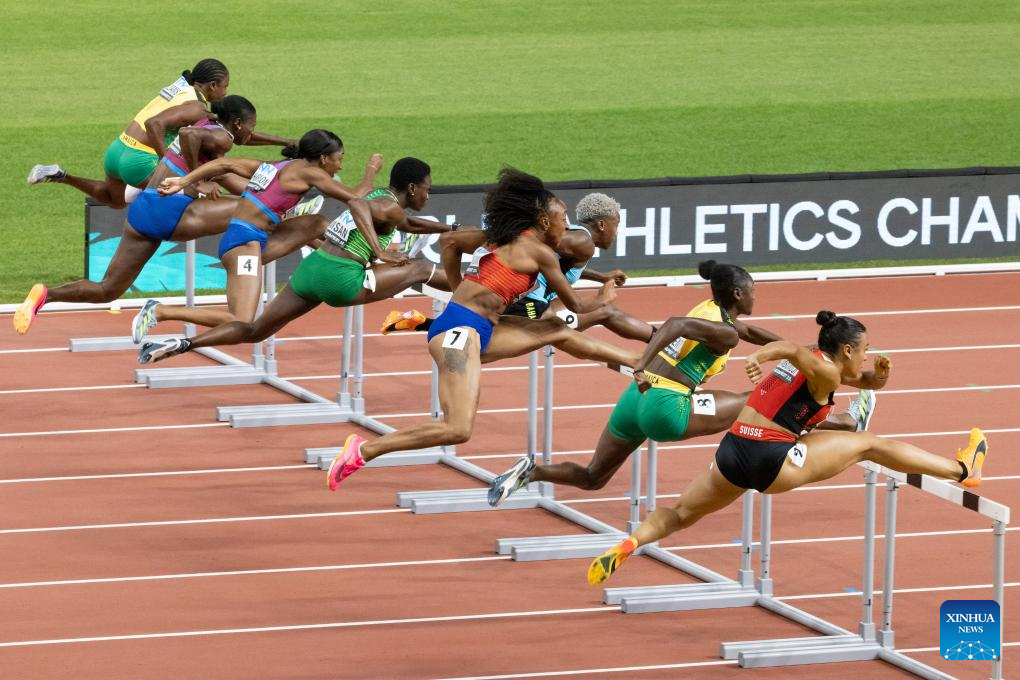 Athletes compete during the Women's 100m Hurdles Final of the World Athletics Championships Budapest 2023 in Budapest, Hungary, Aug. 24, 2023. (Photo by Attila Volgyi/Xinhua)