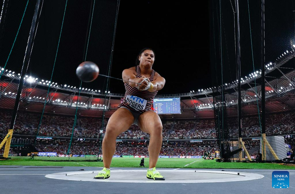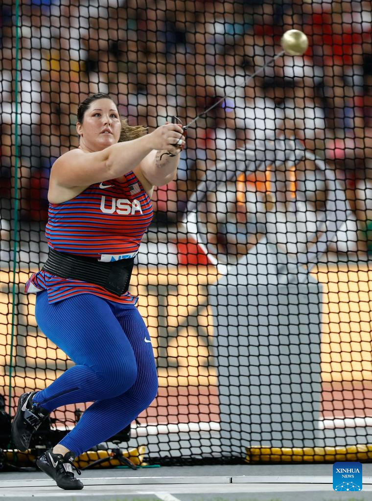 DeAnna Price of the United States competes during the Women's Hammer Throw Final of the World Athletics Championships Budapest 2023 in Budapest, Hungary, Aug. 24, 2023. (Xinhua/Meng Dingbo)