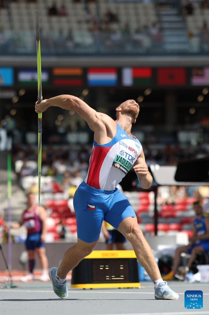 The Czech Republic's Jakub Vadlejch competes during the men's javelin throw qualification of the World Athletics Championships Budapest 2023 in Budapest, Hungary, Aug. 25, 2023. (Xinhua/Li Ming)