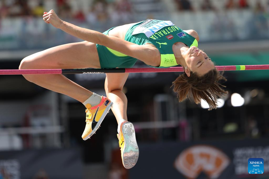 Eleanor Patterson of Australia competes during the women's high jump qualification of the World Athletics Championships Budapest 2023 in Budapest, Hungary, Aug. 25, 2023. (Xinhua/Li Ming)