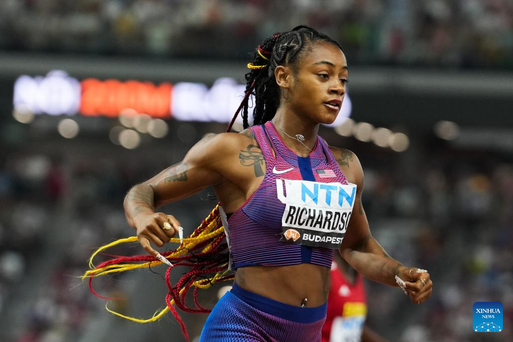 Sha'Carri Richardson of the United States competes during the Women's 200m Semifinal of the World Athletics Championships Budapest 2023 in Budapest, Hungary, Aug. 24, 2023. (Xinhua/Zheng Huansong)