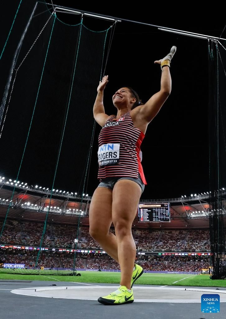 Camryn Rogers of Canada competes during the Women's Hammer Throw Final of the World Athletics Championships Budapest 2023 in Budapest, Hungary, Aug. 24, 2023. (Xinhua/Wang Lili)