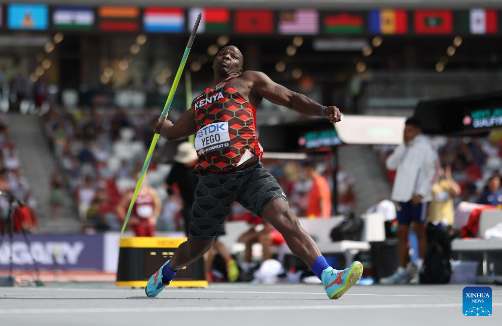 Kenya's Julius Yego competes during the men's javelin throw qualification of the World Athletics Championships Budapest 2023 in Budapest, Hungary, Aug. 25, 2023. (Xinhua/Li Ming)