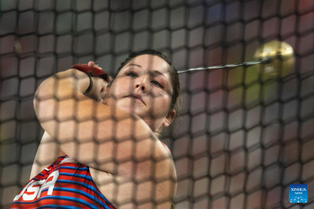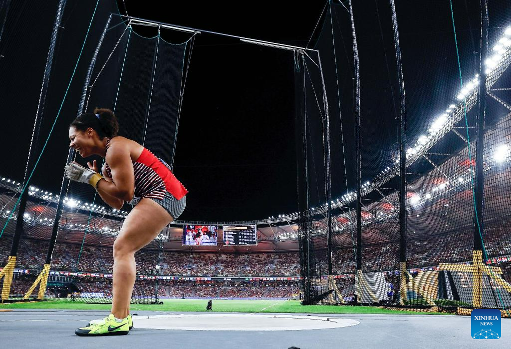 Janee' Kassanavoid of the United States competes during the Women's Hammer Throw Final of the World Athletics Championships Budapest 2023 in Budapest, Hungary, Aug. 24, 2023. (Xinhua/Wang Lili)