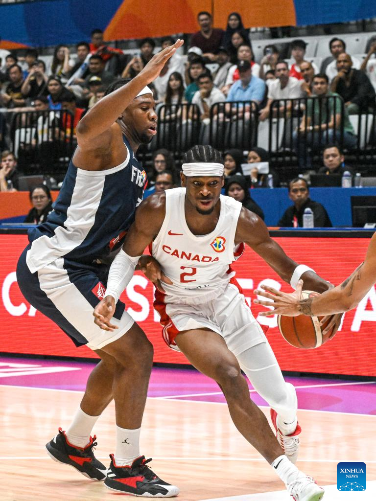 JAKARTA, Aug. 25 (Xinhua) -- The pivotal matchup of the opening day of the FIBA World Cup witnessed Canada's star player Shai Gilgeous-Alexander unstoppable after halftime, leading his team to thrash France 95-65 here on Friday.