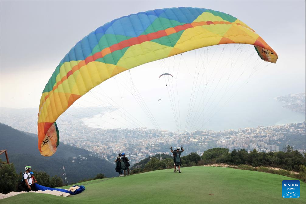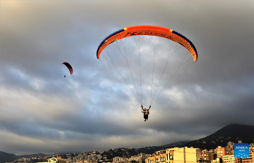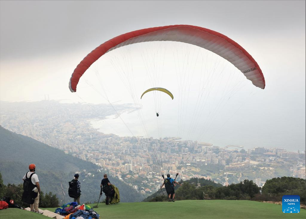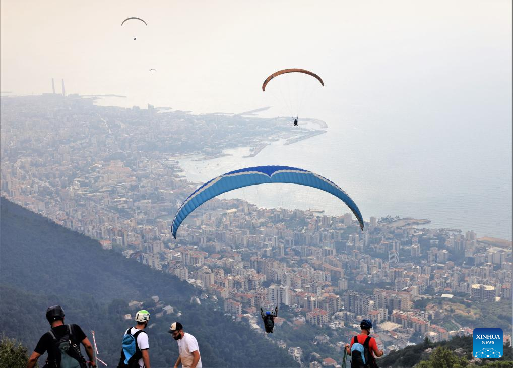 People paraglide over the city of Jounieh, Lebanon, on Aug. 26, 2023. (Xinhua/Liu Zongya)