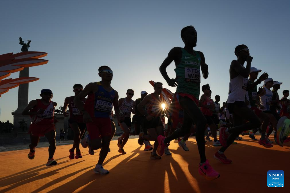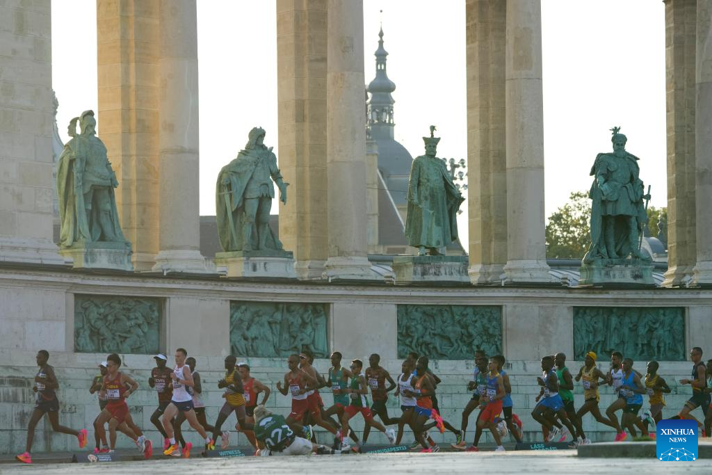 Athletes compete in the Men's Marathon at the World Athletics Championships in Budapest, Hungary, Aug. 27, 2023. (Xinhua/Zheng Huansong)