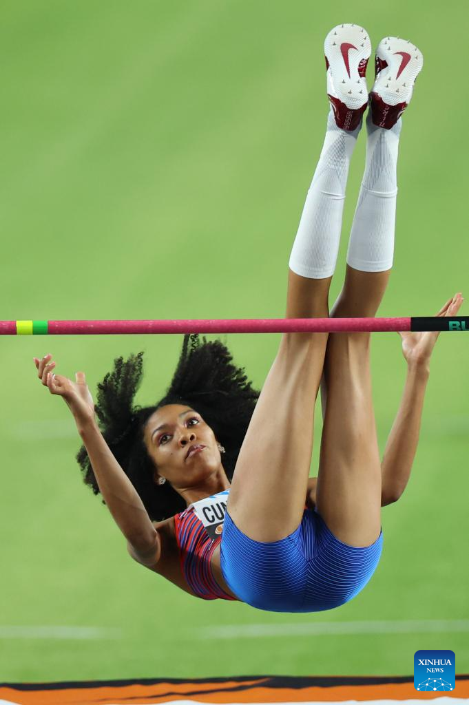 Vashti Cunningham of the United States competes during the Women's High Jump Final of the World Athletics Championships Budapest 2023 in Budapest, Hungary, Aug. 27, 2023. (Xinhua/Zheng Huansong)