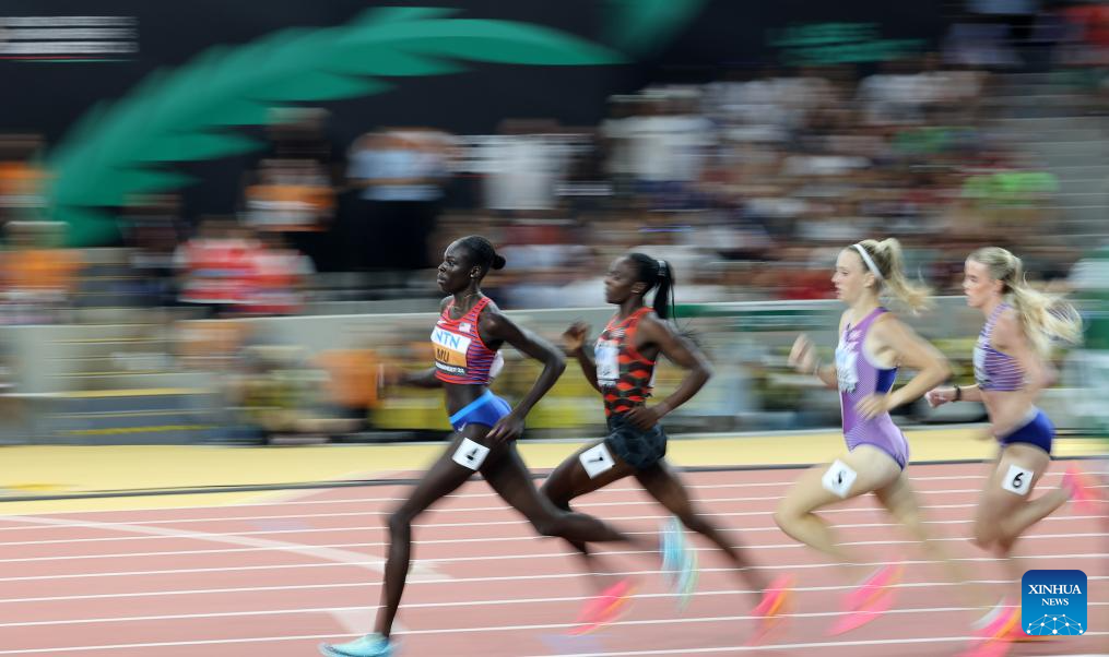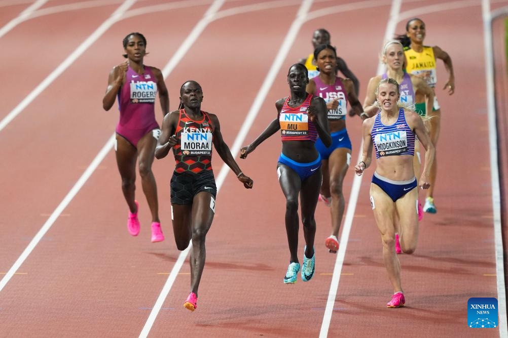 Athing Mu (L) of the United States competes during the Women's 800m Final of the World Athletics Championships Budapest 2023 in Budapest, Hungary, Aug. 27, 2023. (Xinhua/Li Ming)