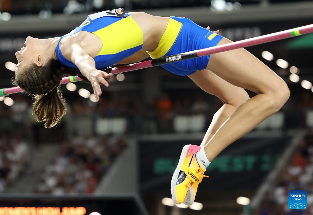 Yaroslava Mahuchikh of Ukraine competes during the Women's High Jump Final of the World Athletics Championships Budapest 2023 in Budapest, Hungary, Aug. 27, 2023. (Xinhua/Li Ming)