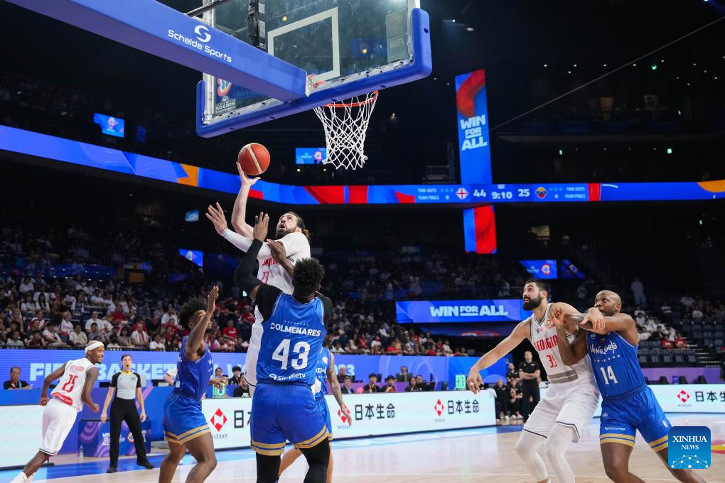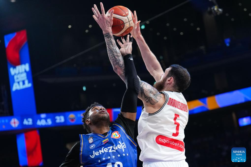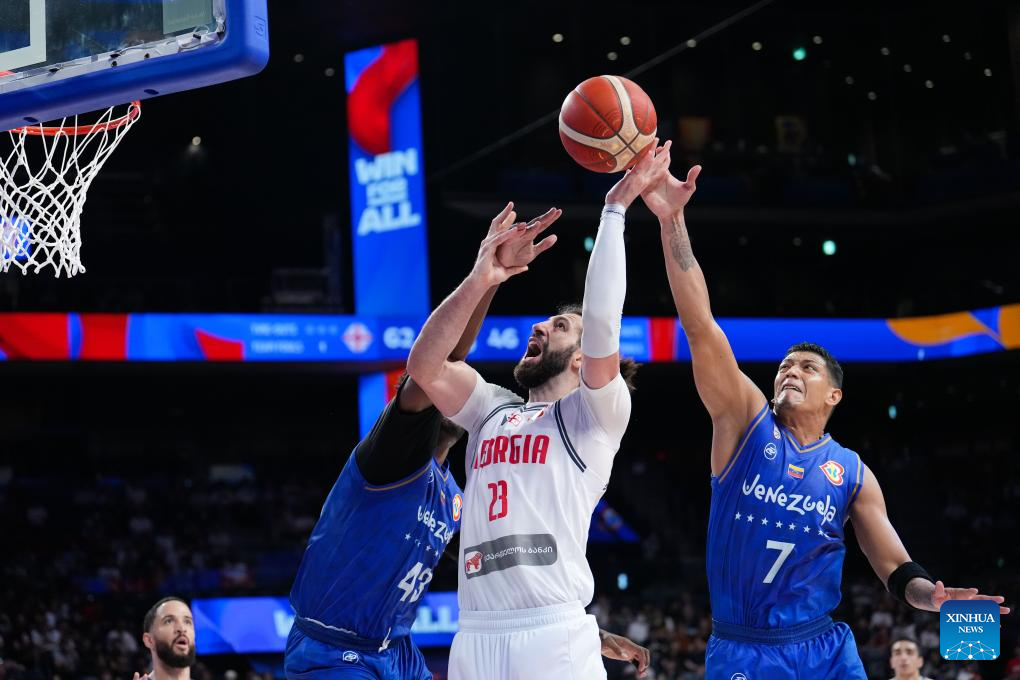Georgia's Tornike Shengelia (C) competes during the group F first round match between Georgia and Venezuela at the FIBA World Cup 2023 in Okinawa, Japan, Aug. 30, 2023. (Xinhua/Zhang Xiaoyu)
