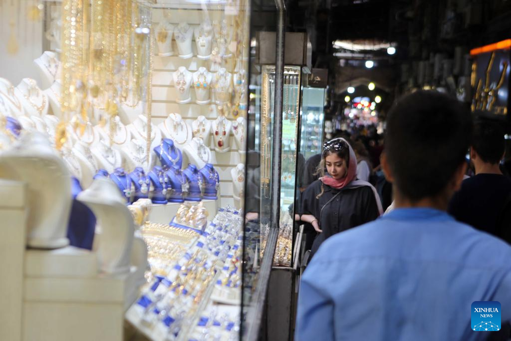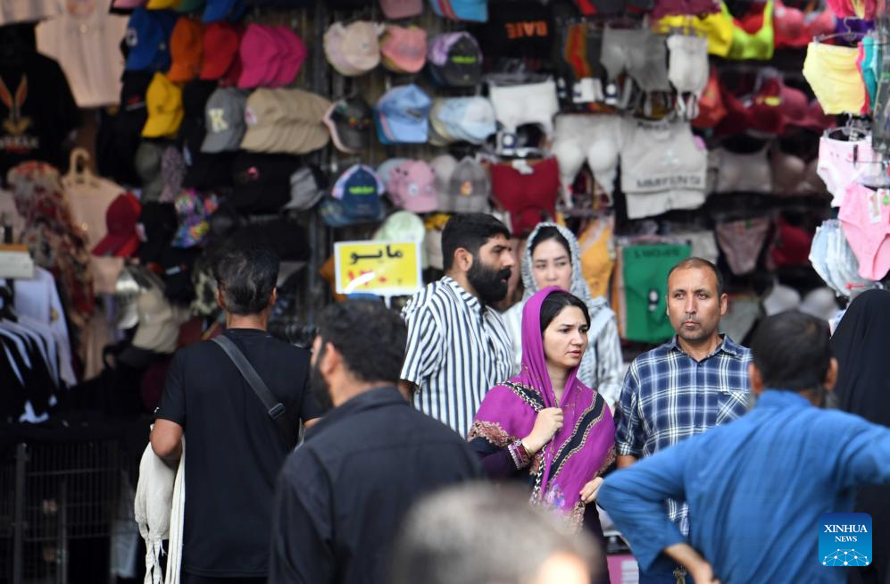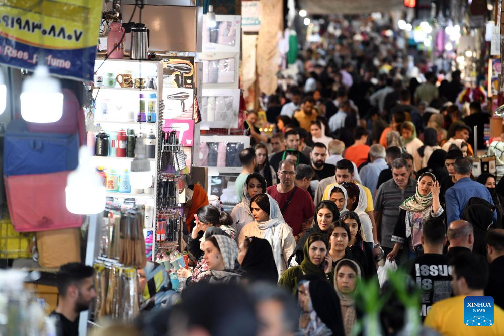 People shop at a bazaar in Tehran, Iran, on Aug. 27, 2023. (Xinhua/Shadati)