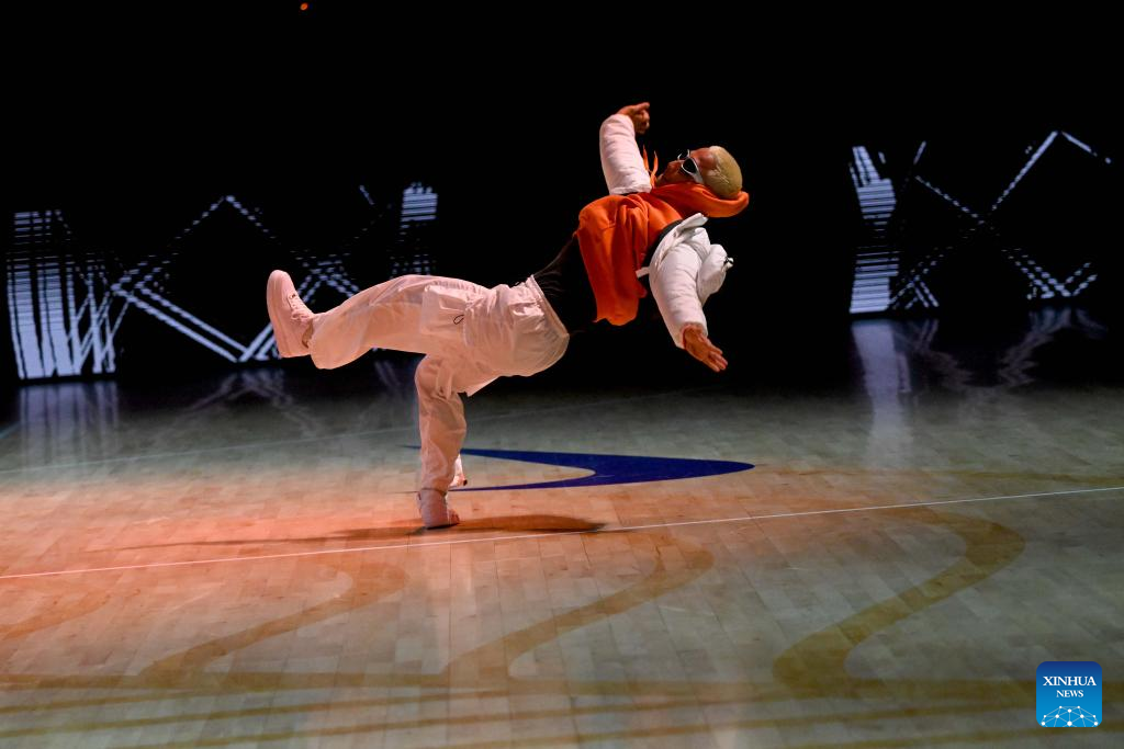 A dancers performs before the Group P classification round 17-32 match between Cote d'Ivoire and Lebanon at the FIBA World Cup 2023 in Jakarta, Indonesia, Aug. 31, 2023. (Xinhua/Agung Kuncahya B.)