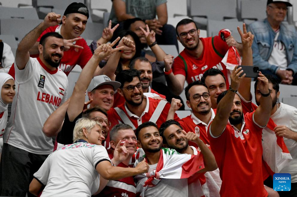 Lebanon supporters take pictures during the Group P classification round 17-32 match between Cote d'Ivoire and Lebanon at the FIBA World Cup 2023 in Jakarta, Indonesia, Aug. 31, 2023. (Xinhua/Agung Kuncahya B.)