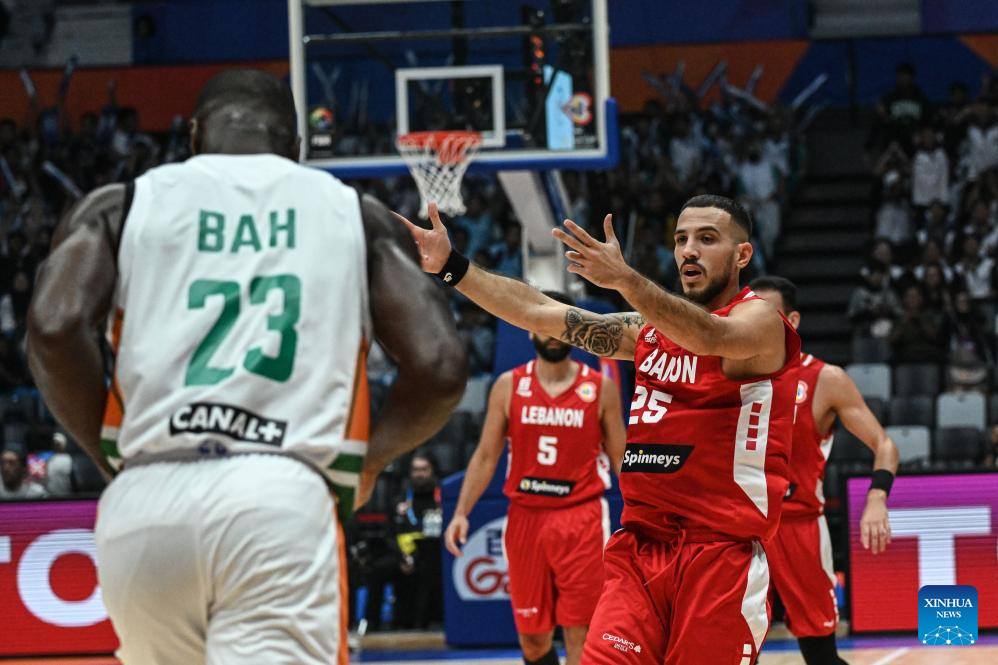 Ali Mezher (Front R) of Lebanon reacts during the Group P classification round 17-32 match between Cote d'Ivoire and Lebanon at the FIBA World Cup 2023 in Jakarta, Indonesia, Aug. 31, 2023. (Xinhua/Agung Kuncahya B.)
