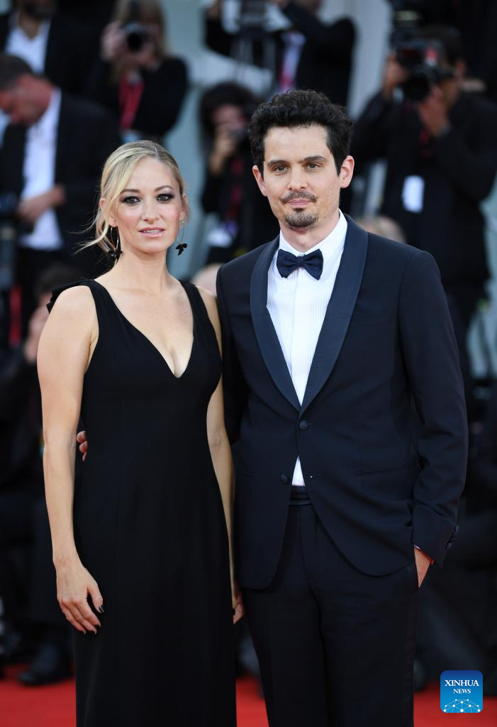 The jury president Damien Chazelle (R) and actress Olivia Hamilton pose on the red carpet of the 80th Venice International Film Festival in Venice, Italy, Aug. 30, 2023. The 80th annual Venice International Film Festival kicked off here on Wednesday evening, with a diverse line-up of movies competing for the prestigious Golden Lion prize. (Xinhua/Jin Mamengni)