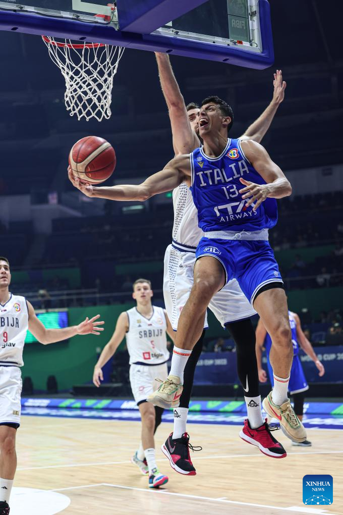 Stefano Tonut (R) of Italy goes for a lay-up during the second round match between Serbia and Italy at the 2023 FIBA World Cup in Manila, the Philippines, Sept. 1, 2023. (Xinhua/Wu Zhuang)
