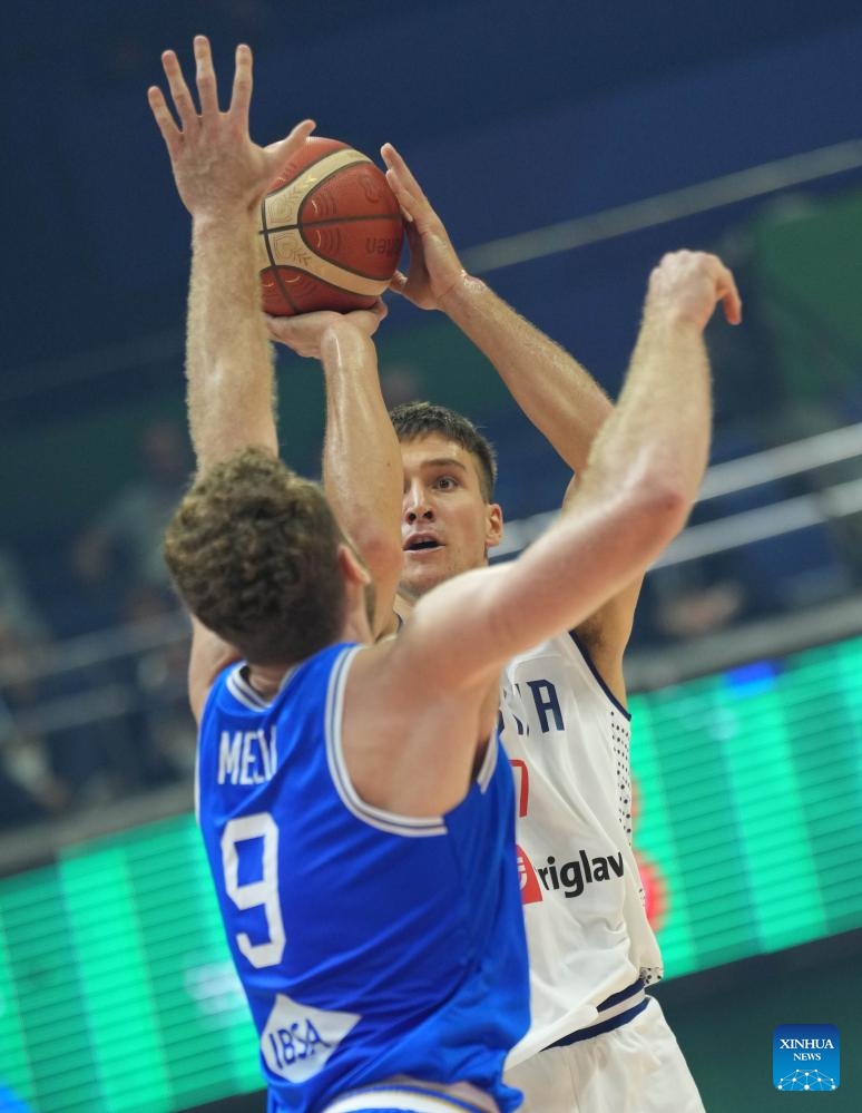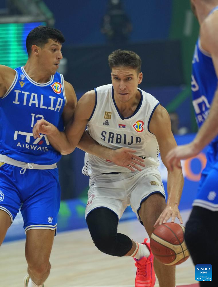 Bogdan Bogdanovic (R) of Serbia competes during the second round match between Serbia and Italy at the 2023 FIBA World Cup in Manila, the Philippines, Sept. 1, 2023. (Xinhua/Meng Yongmin)