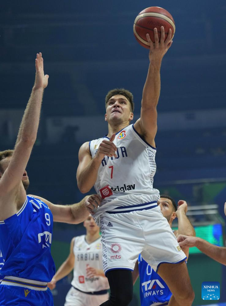 Bogdan Bogdanovic (C) of Serbia breaks through during the second round match between Serbia and Italy at the 2023 FIBA World Cup in Manila, the Philippines, Sept. 1, 2023. (Xinhua/Meng Yongmin)