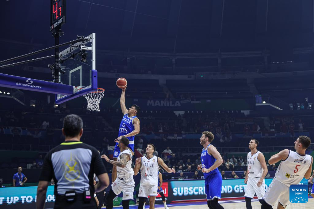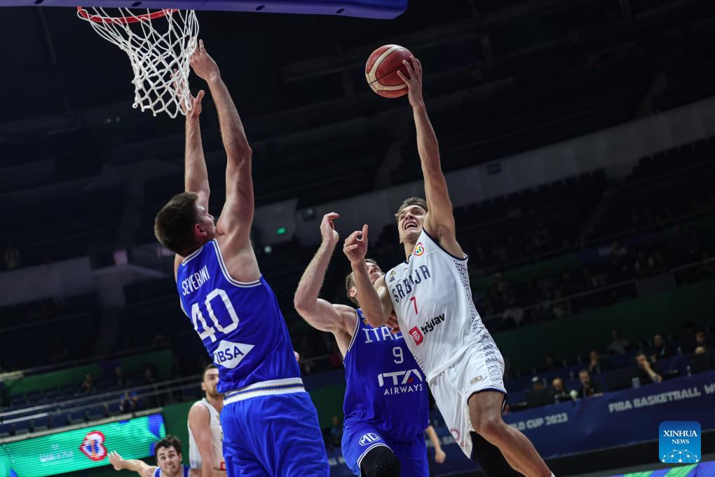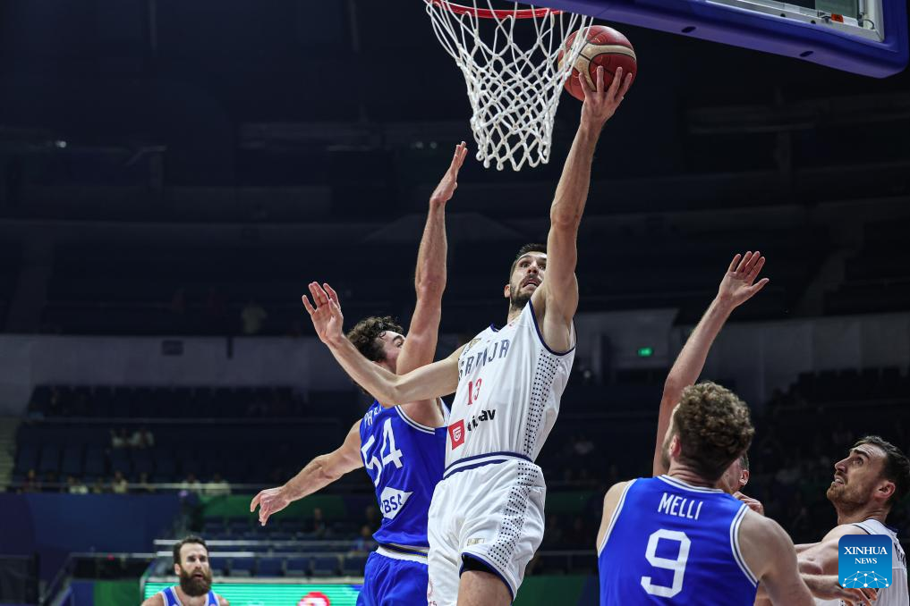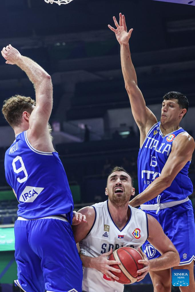 Nikola Jovic (C) of Serbia competes during the second round match between Serbia and Italy at the 2023 FIBA World Cup in Manila, the Philippines, Sept. 1, 2023. (Xinhua/Meng Yongmin)