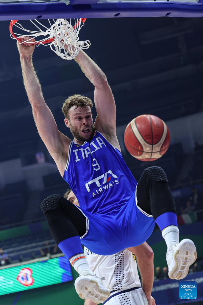 Nicolo Melli of Italy dunks during the second round match between Serbia and Italy at the 2023 FIBA World Cup in Manila, the Philippines, Sept. 1, 2023. (Xinhua/Wu Zhuang)