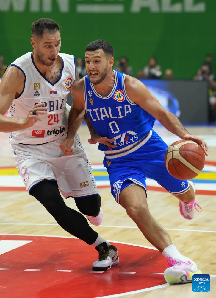 Simone Fontecchio (C) of Italy during the second round match between Serbia and Italy at the 2023 FIBA World Cup in Manila, the Philippines, Sept. 1, 2023. (Xinhua/Wu Zhuang)