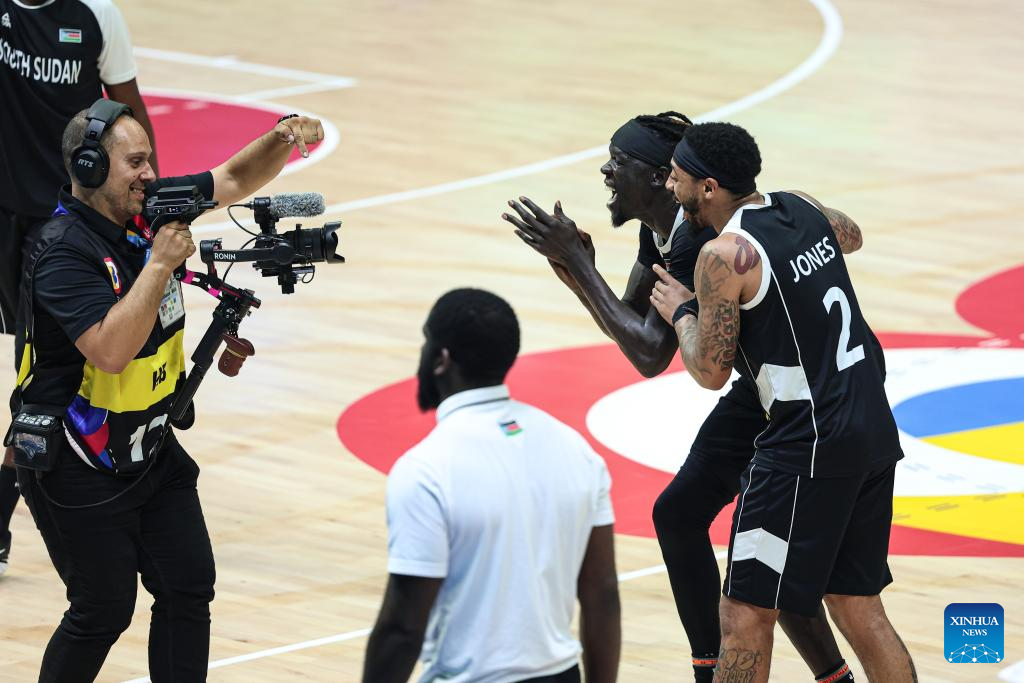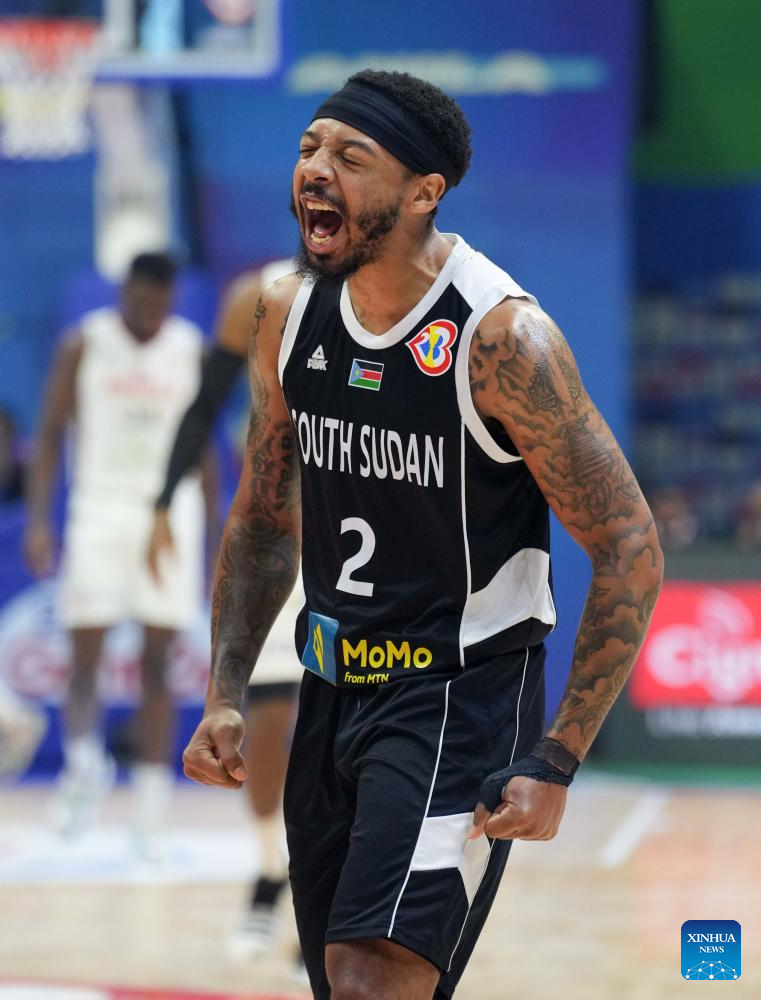 Carlik Jones of South Sudan celebrates during the classification round 17-32 match between Angola and South Sudan at the 2023 FIBA World Cup in Manila, the Philippines, Sept. 2, 2023. (Xinhua/Meng Yongmin)