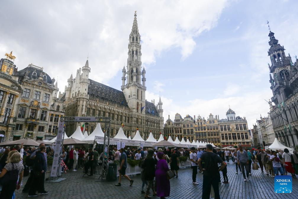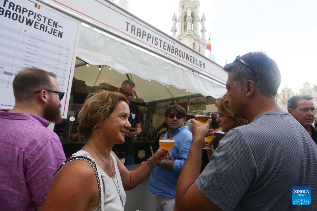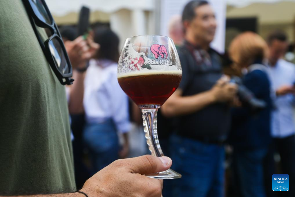 People attend the 23rd Belgian Beer Weekend in Brussels, Belgium, Sept. 2, 2023. More than 500 Belgian beers were presented by 53 breweries to the public during the event. (Xinhua/Zheng Huansong)